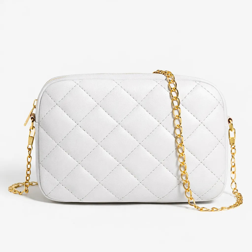 Women's Quilted Crossbody Bag - Leather Shoulder Bag with Gold Chain